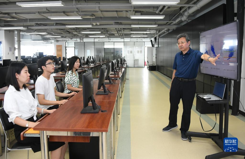 8月30日,在北京交通大学交通大数据实验室,邵春福(右一)讲解数车数据分析结果。