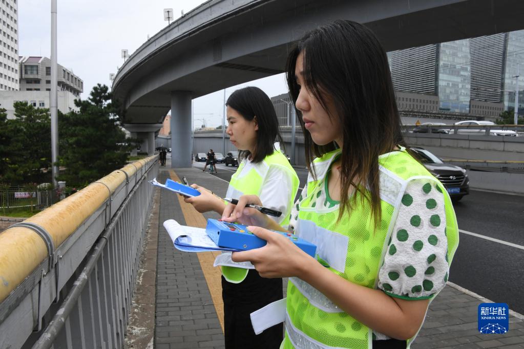 在北京西直门桥,刘晓珂(右)与王晟由进行数车(8月28日摄)。