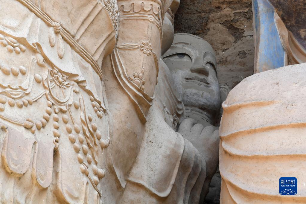 新华社兰州8月30日电 题:距今约1600年天梯山石窟大佛的脚,“康复”了!