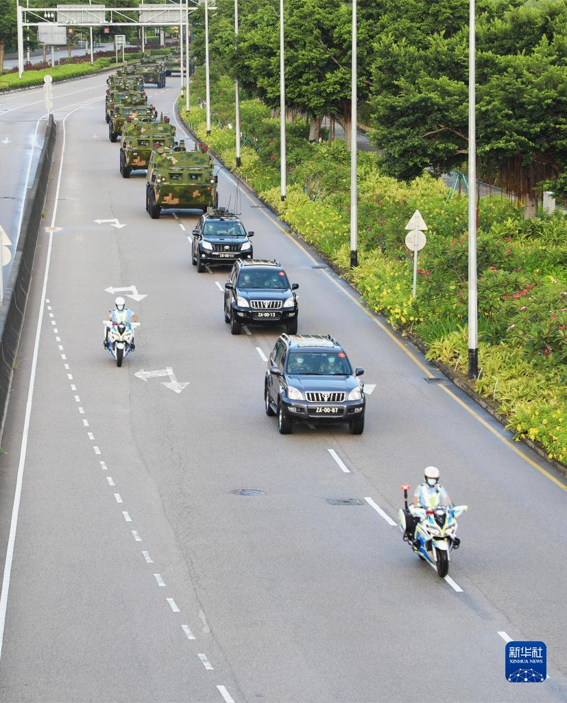 8月30日,轮换出澳官兵经过澳门街道。 新华社发(陈思异摄)