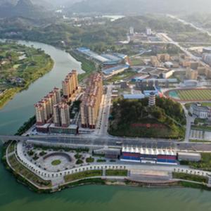 广西环江毛南族自治县毛南家园易地扶贫搬迁城北安置区外新的学校(2020年5月21日摄,无人机照片)。新华社记者 周华 摄