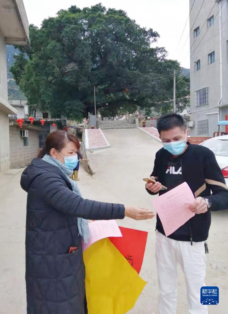 孙丽美(左)在疫情防控工作中(资料照片)。新华社发(霞浦县委宣传部供图)