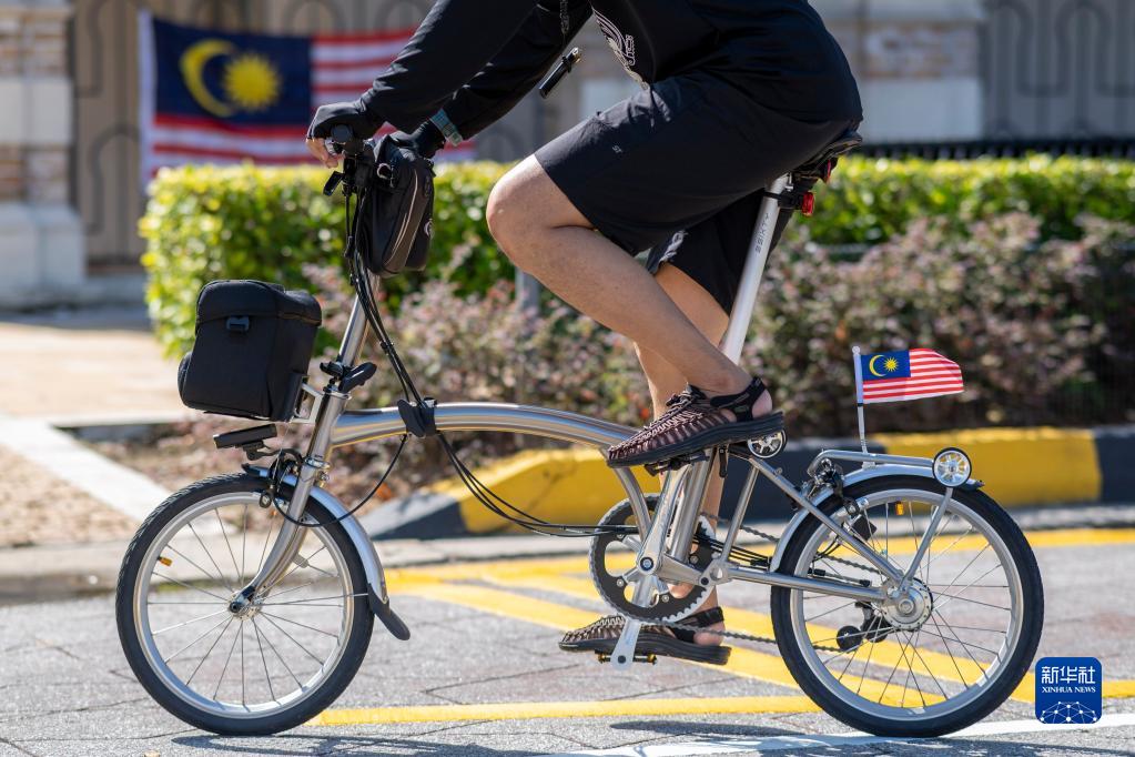 8月31日,在马来西亚吉隆坡,市民用马来西亚国旗装饰自行车庆祝独立64周年。
