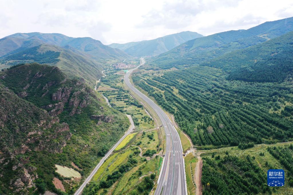这是8月31日拍摄的延崇高速河北段延伸工程部分路段(无人机照片)。