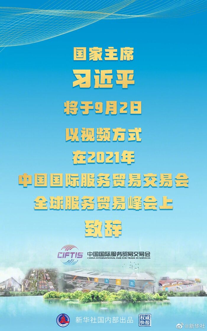 新华社北京9月1日电 商务部新闻发言人高峰9月1日宣布:2021年中国国际服务贸易交易会将于9月2日至7日在北京举行。其间,将于9月2日举行全球服务贸易峰会。国家主席习近平将以视频方式在全球服务贸易峰会上致辞。