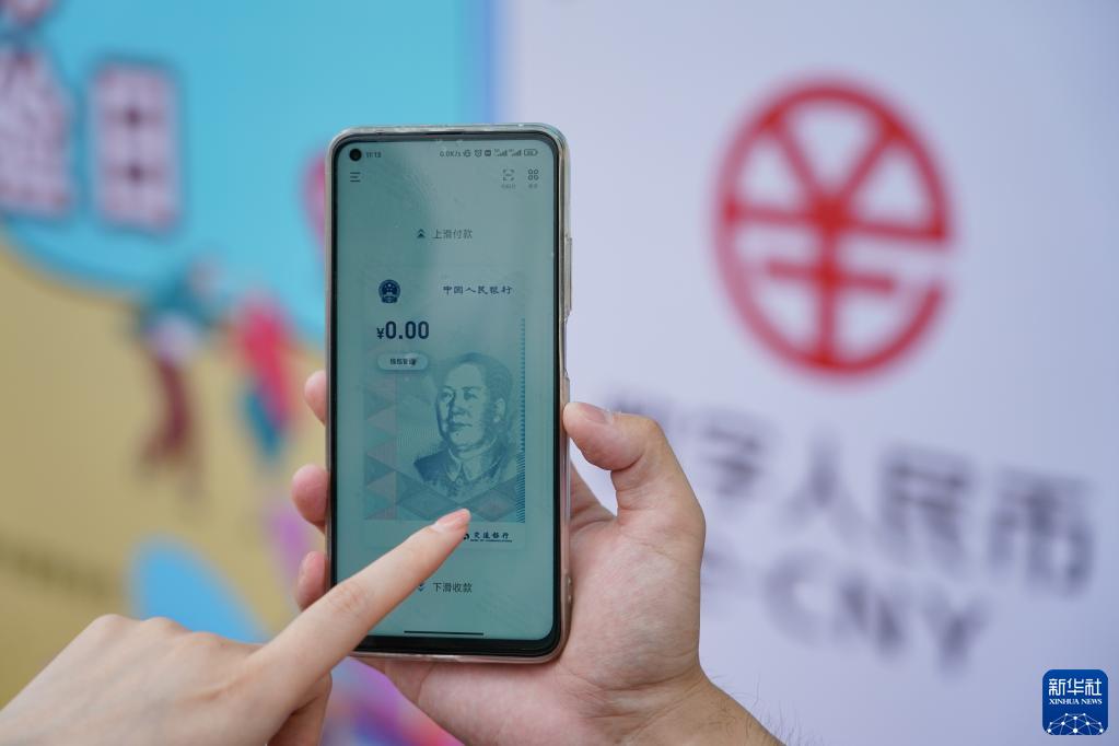 6月16日,在北京欢乐谷举行的数字人民币体验活动上,交通银行北京市分行的工作人员引导游客开通数字人民币钱包。新华社记者 陈钟昊 摄