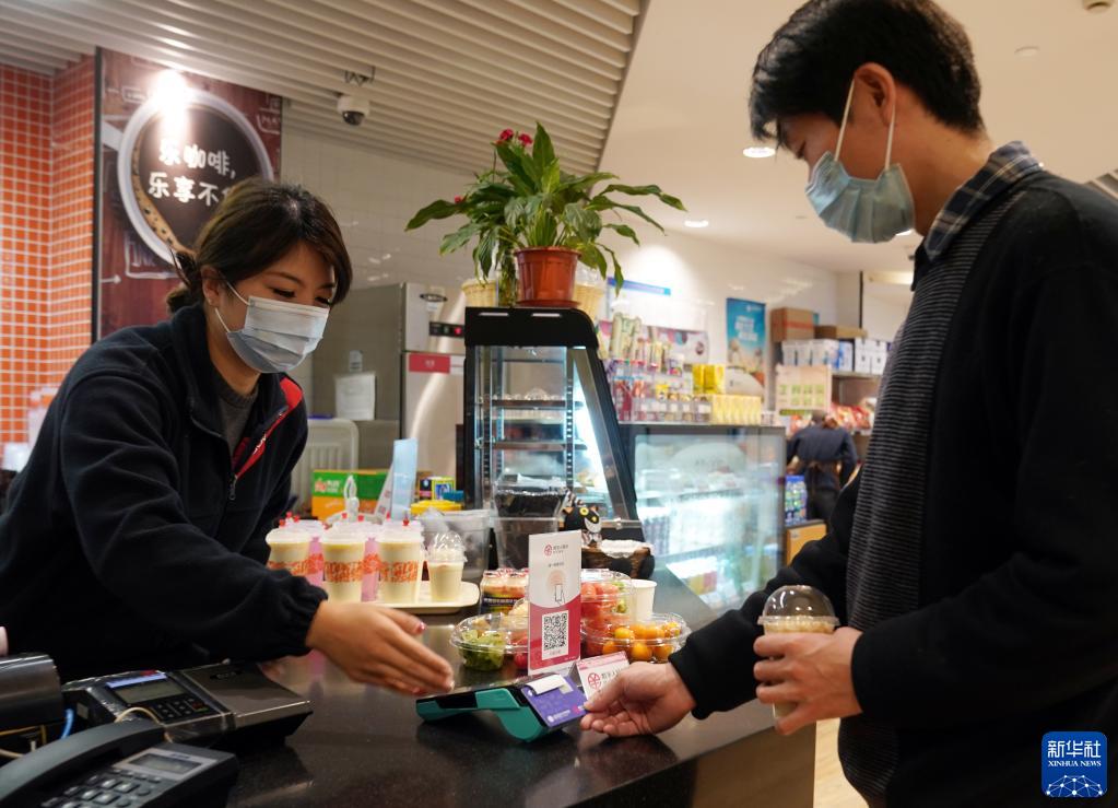 1月5日,在上海交通大学医学院附属同仁医院员工食堂,员工通过数字人民币“硬钱包”支付。新华社记者 刘颖 摄