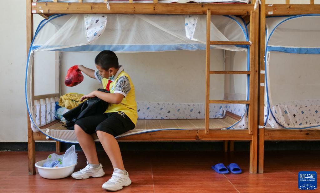 9月1日,惠屿岛学生在学校宿舍内放置行李。