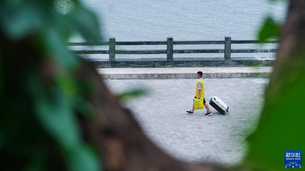 9月1日,惠屿岛的学生带着行李前往码头。