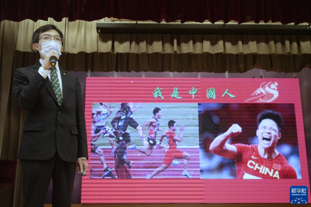 9月1日,在香港教育工作者联会黄楚标中学,校长许振隆在以“我是中国人”为主题的开学典礼上致辞。新华社记者 王申 摄