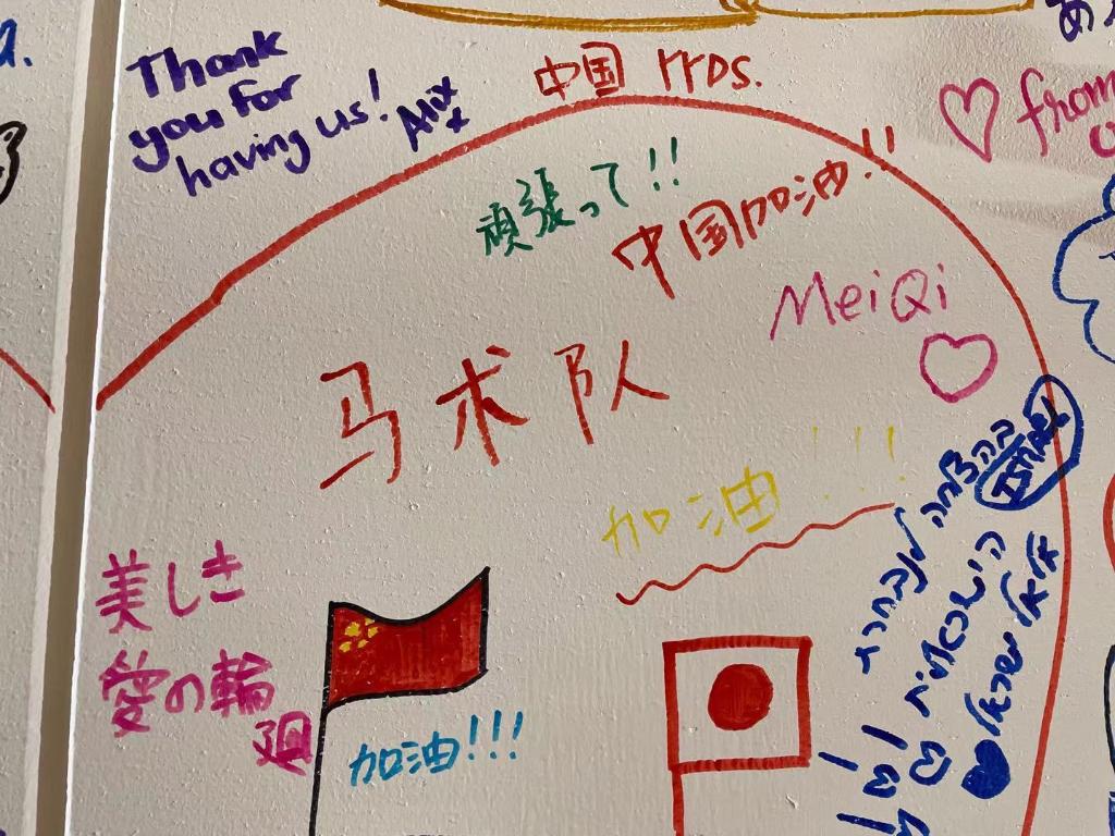 当然,很多留言一看就是中国人留下的。如“马到成功,感谢东京”“中国加油”“鞍上无人、鞍下无马”,甚至还有人写上了“人中吕布,马中赤兔”“同一个世界,同一个梦想”等大家熟知的句子。