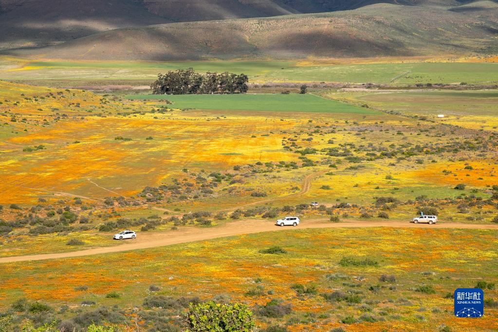这是8月28日拍摄的南非西开普省野花盛开的山谷。