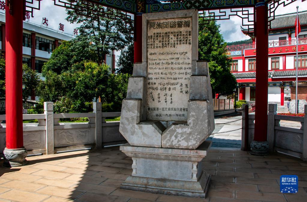 位于云南宁洱哈尼族彝族自治县民族团结园内的民族团结誓词碑(9月2日摄)。新华社发(白马辛荣 摄)