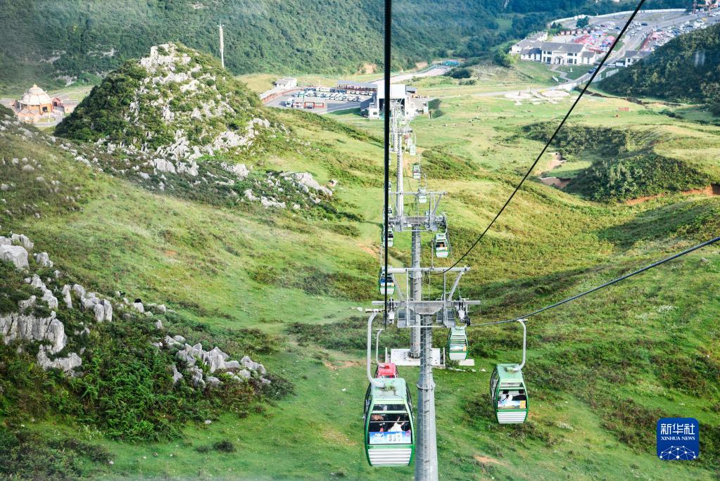 游客在贵州省赫章县阿西里西·韭菜坪景区乘坐缆车观光(9月3日摄)。