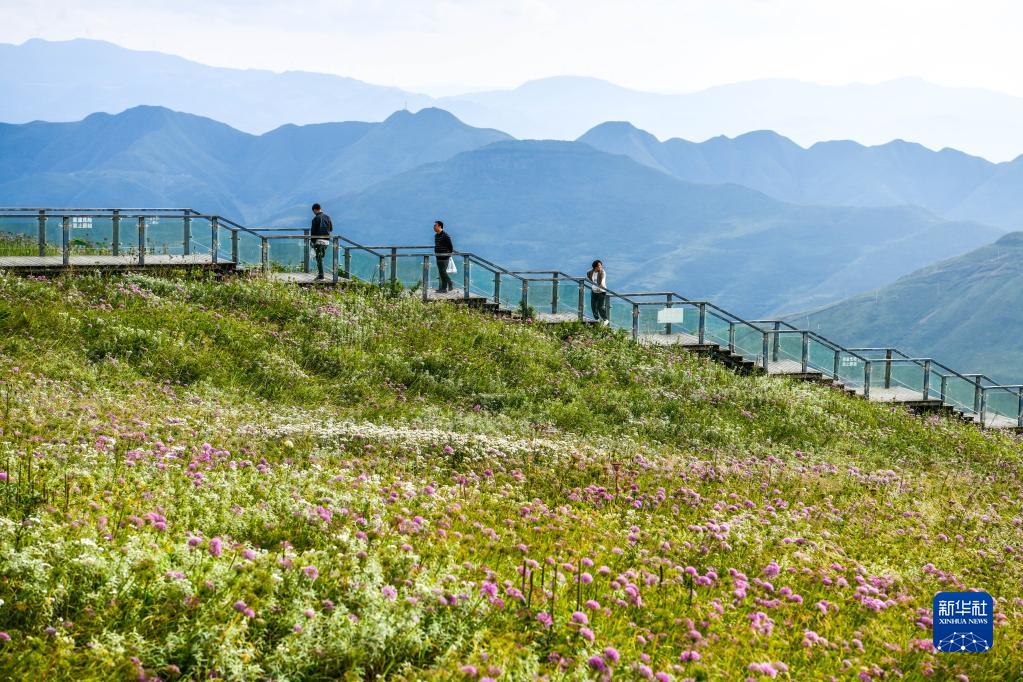 游客在贵州省赫章县阿西里西·韭菜坪景区旅游观光(9月3日摄)。