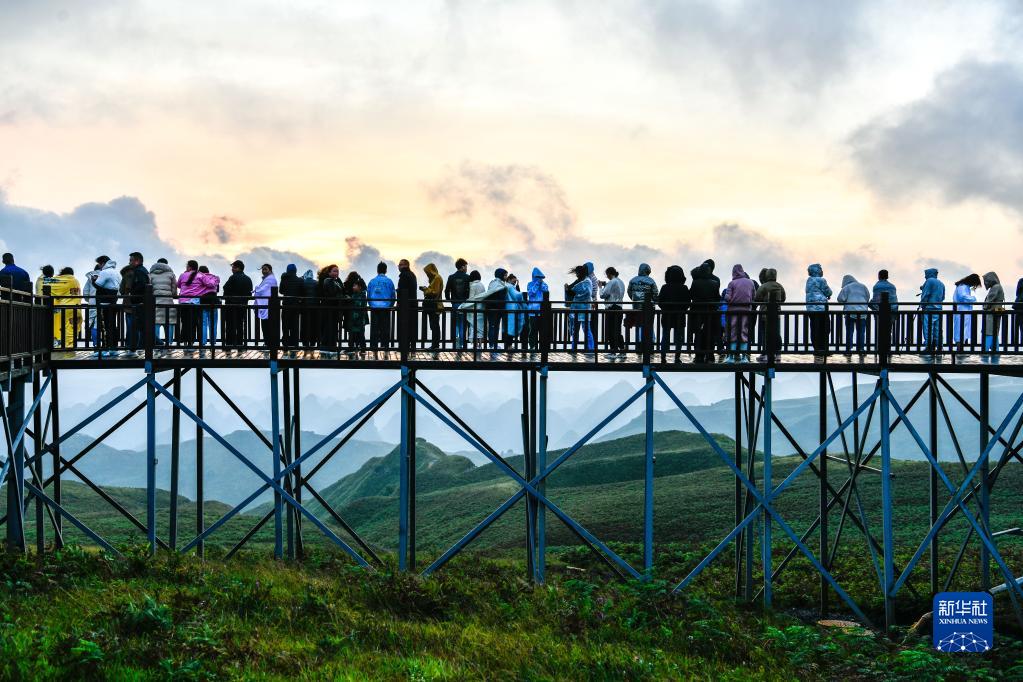 9月4日,游客在贵州省赫章县阿西里西·二台坡景区观日出。