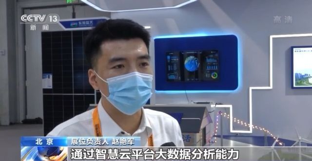 展位负责人 赵艳军:通过高效能光伏电站组件、新一代储能技术,将电能实现用户侧最优分配;通过智慧云平台大数据分析能力,可以快速分析出用户的用电习惯。
