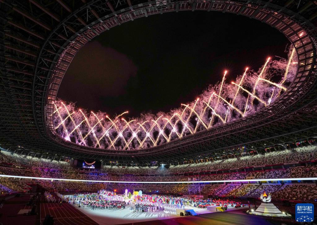 9月5日,第16届夏季残疾人奥林匹克运动会闭幕式在日本东京举行。这是闭幕式上的焰火表演。新华社记者 胡虎虎 摄
