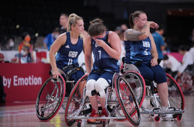 8月31日,英国队球员在赛后。当日,在东京残奥会女子轮椅篮球四分之一决赛中,英国队不敌中国队,无缘半决赛。新华社记者 才扬 摄