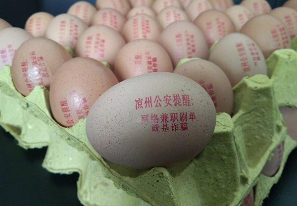 免费送送送。送印有防电信诈骗标语的鸡蛋,俗称“反诈蛋”;送口罩……