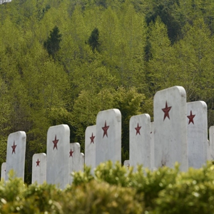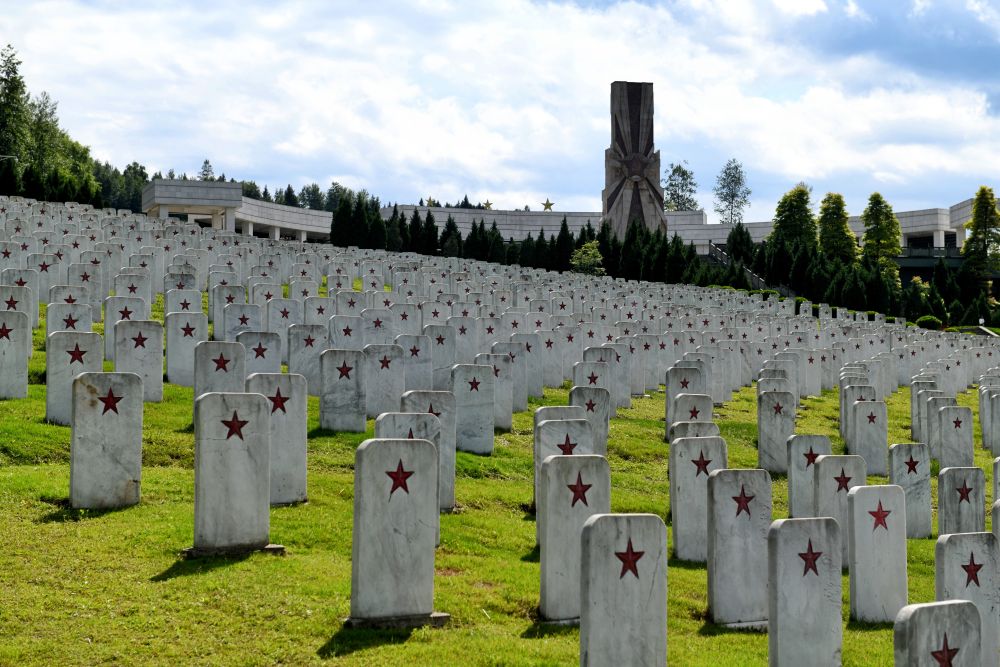 一行行排列如军阵的墓碑布满山坡,许多墓碑上没有名字,只镌刻一颗五角星,鲜红如初。