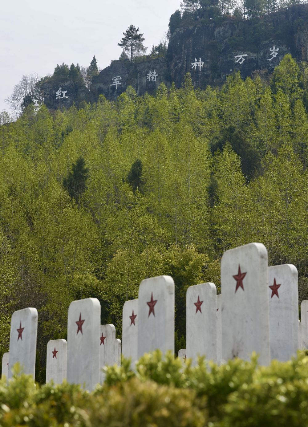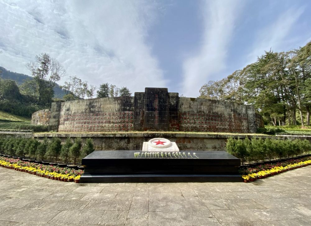 雨后新晴,墓碑上殷红的五角星在松柏映衬下分外夺目,远处青山苍茫。这些战士虽未能留下姓名,但他们拥有一个共同的名字——红军。