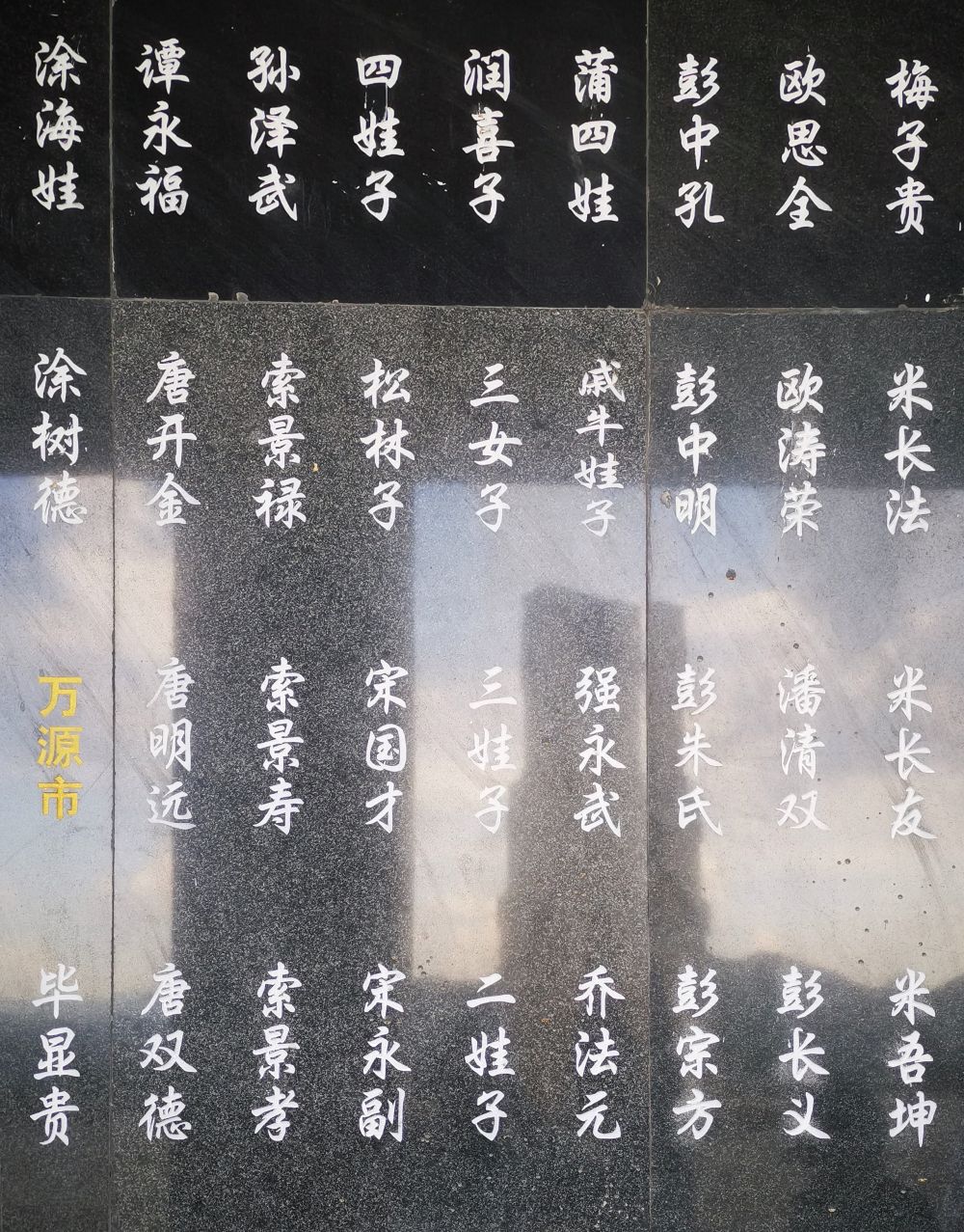 今年清明节,红军烈士后人在川陕革命根据地红军烈士陵园红军烈士纪念墙上找寻先辈的名字。新华社记者 刘坤 摄