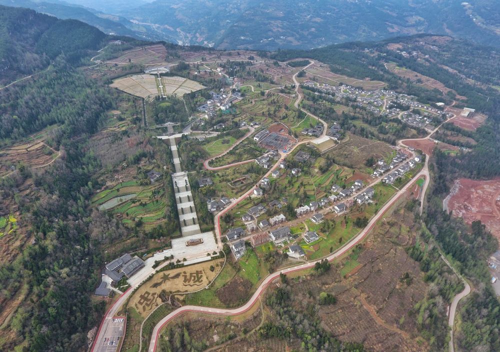 川陕革命根据地红军烈士陵园和王坪村全貌。新华社记者 刘坤 摄