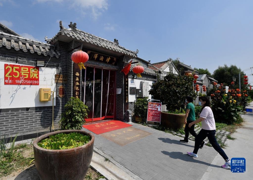游客走进天津市宝坻区黄庄镇小辛码头村的一家农家院(9月2日摄)。新华社记者 孙凡越 摄