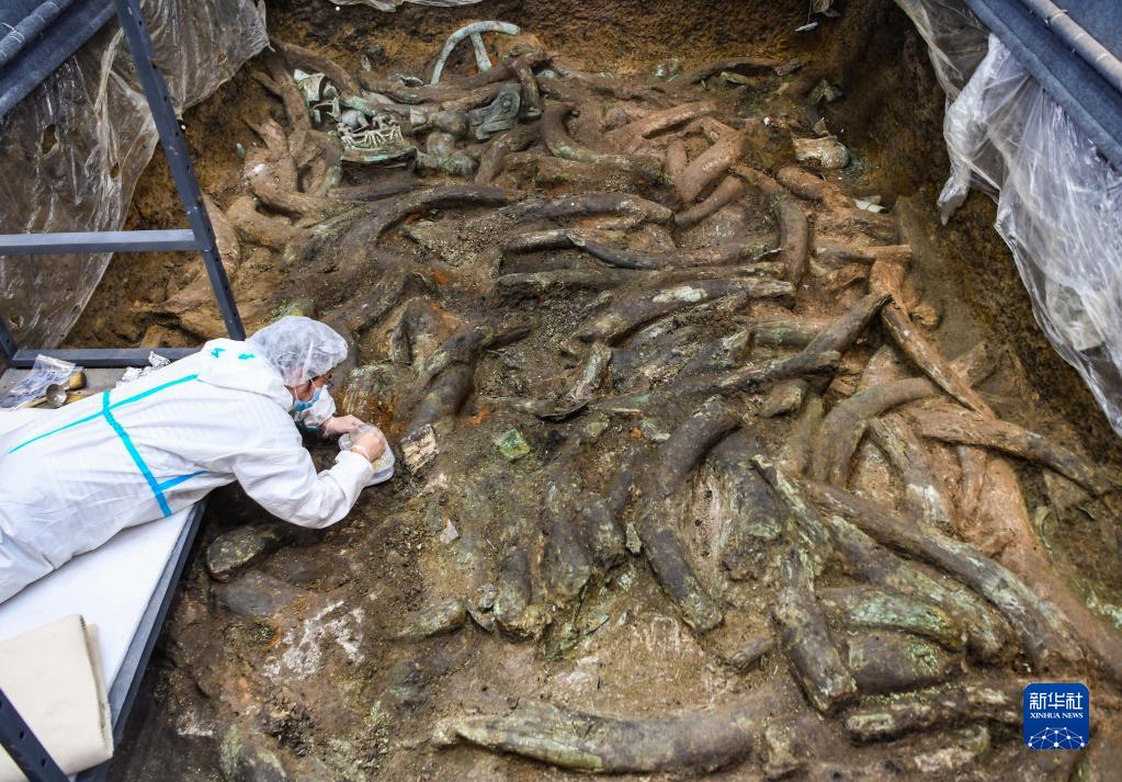 2019年,四川省文物考古研究院通过调查勘探,在1号、2号“祭祀坑”的旁边又新发现6个“祭祀坑”,2020年10月开始正式考古发掘。据了解,在大约一年的发掘时间内,新发现的6个“祭祀坑”已出土金器、青铜器、玉器、象牙等近2000件大大小小的文物。