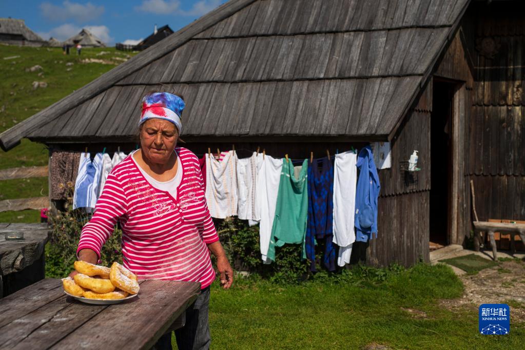 9月8日,斯洛文尼亚维利卡普拉尼那高地的一名牧民将传统面点“Flancati”端上餐桌。