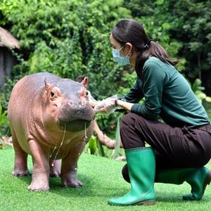 当日,非洲河马菲菲在广州长隆野生动物世界迎来两周岁生日。菲菲是长隆人工育幼长大的雌性河马宝宝,目前体重超过200公斤。
