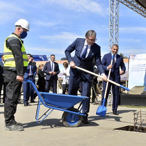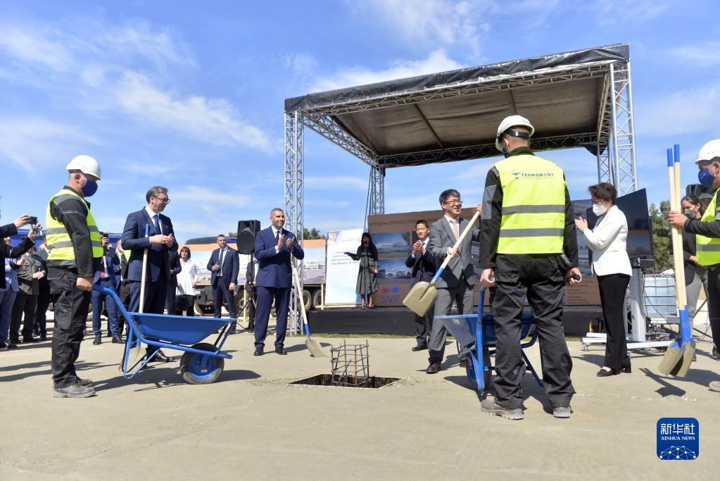9月9日,在塞尔维亚贝尔格莱德,塞尔维亚总统武契奇(前左二)出席中国疫苗工厂奠基仪式。新华社发(普雷德拉格·米洛萨夫列维奇摄)