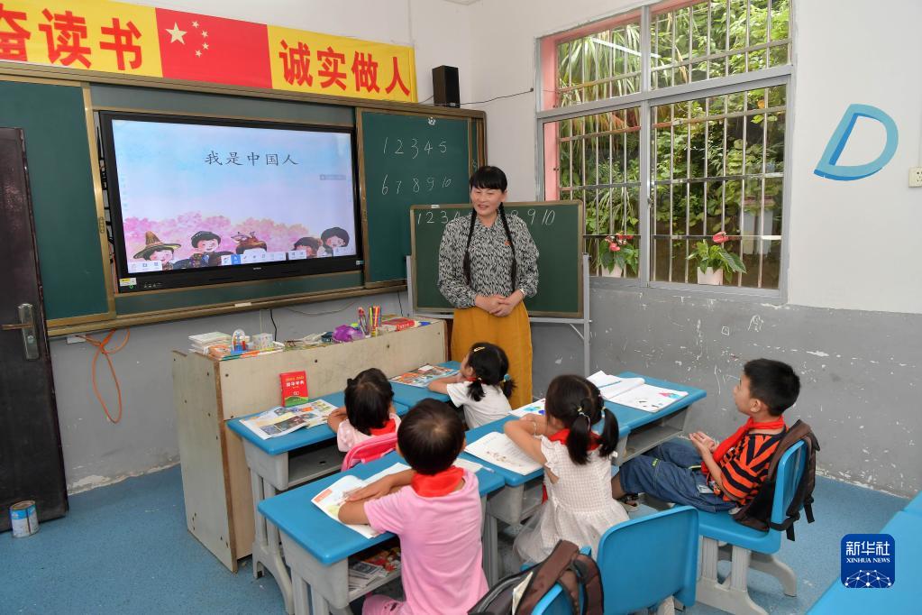 在江西奉新县澡下镇白洋教学点,支月英在给学生上课(9月2日摄)。