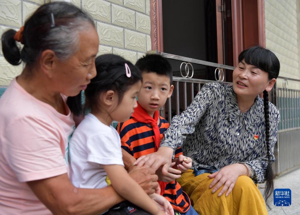 放学后,支月英(右一)和学生家长聊天(9月2日摄)。