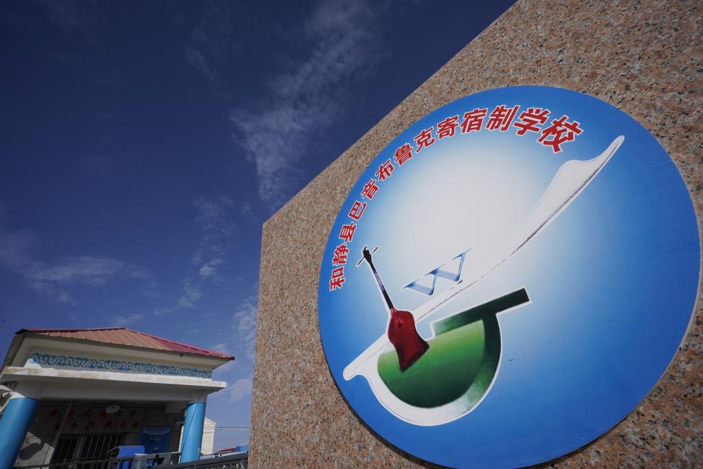 新疆和静县巴音布鲁克寄宿制学校校门(9月9日摄)。新华社记者宿传义 摄
