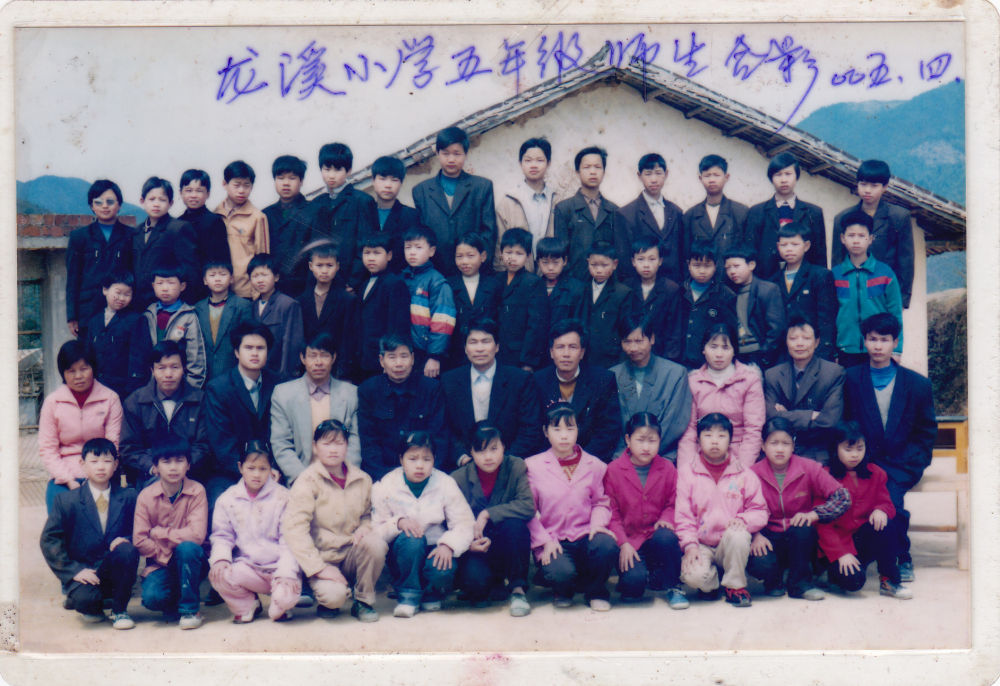 (图为2005年龙溪小学五年级毕业照 方李长为二排右五 朱森林为一排左一)