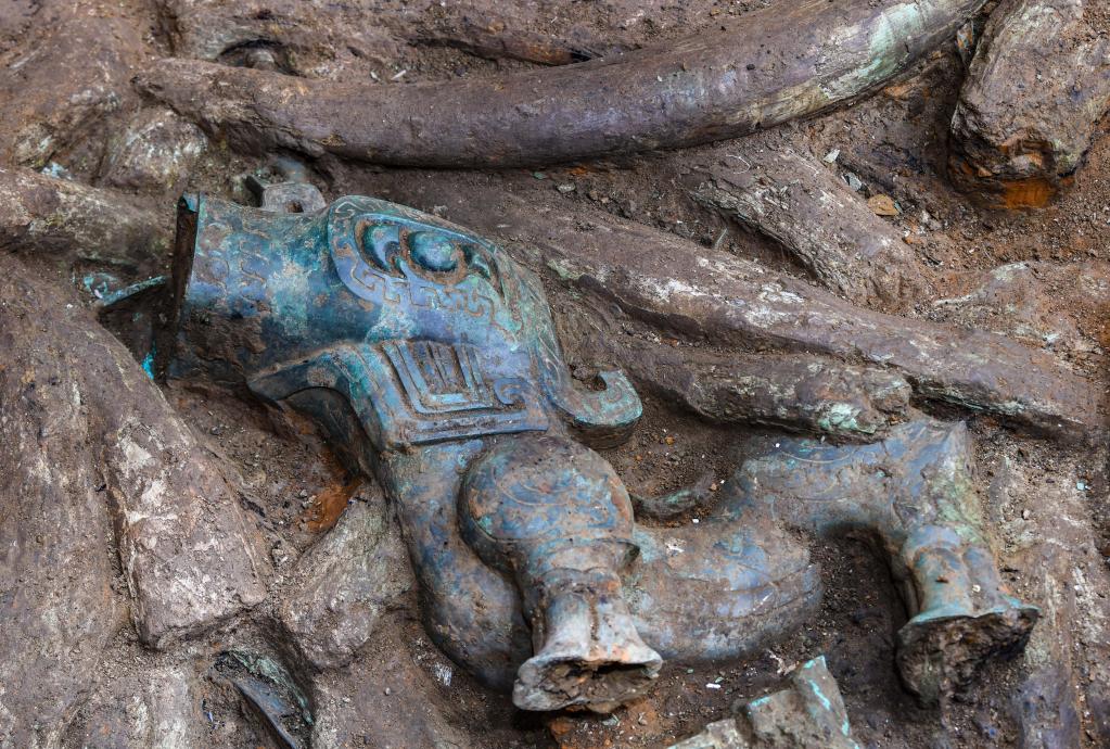 此外,8号“祭祀坑”还发现了见证中原文明和古蜀文明交融的朱砂彩绘青铜尊、面部彩绘的青铜人头像等。