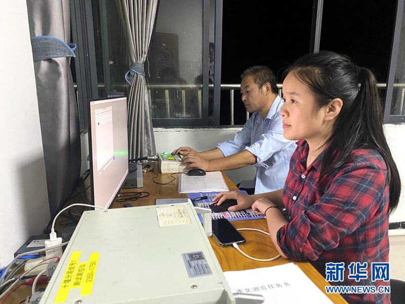 白河水文站驻测人员在检查测流信号。新华网发 刘月摄