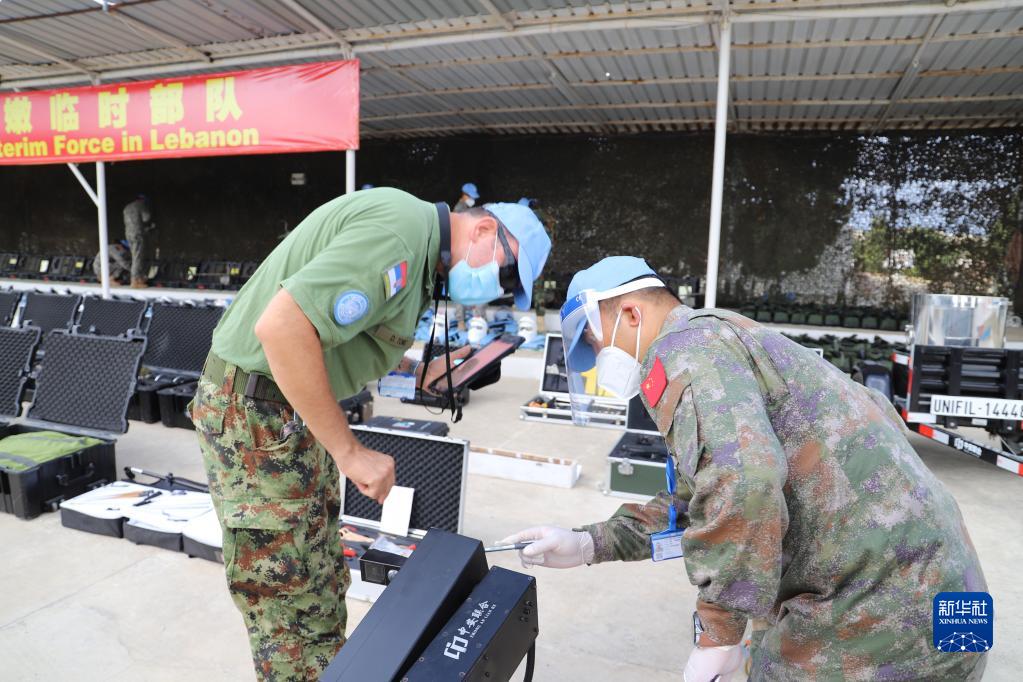 9月10日,在黎巴嫩南部辛尼亚村中国营,联黎部队司令部核查组成员核查中国维和多功能工兵分队的装备。新华社发(梁裕源摄)