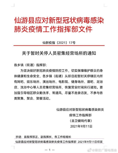 仙游县应对新型冠状病毒感染肺炎疫情工作指挥部文件