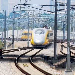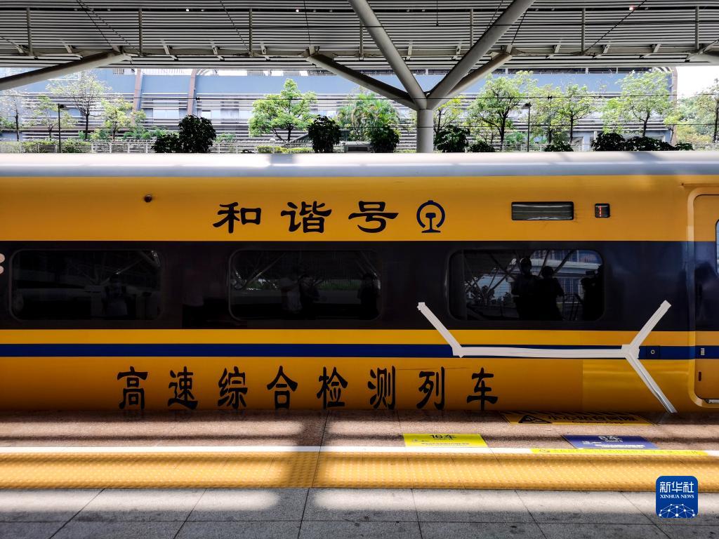 55690次黄色高速列车CRH380AJ-0202为高速铁路综合检测列车,因其黄色涂装被称为“黄医生”。列车上配置了通信设备、传感器、摄像头等装置,能够在运行途中对沿线轨道、路基、通信信号、车辆动态、接触网等进行动态检查,为线路开通运营提供技术服务和保障。