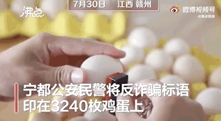 民警将反诈标语印在鸡蛋上