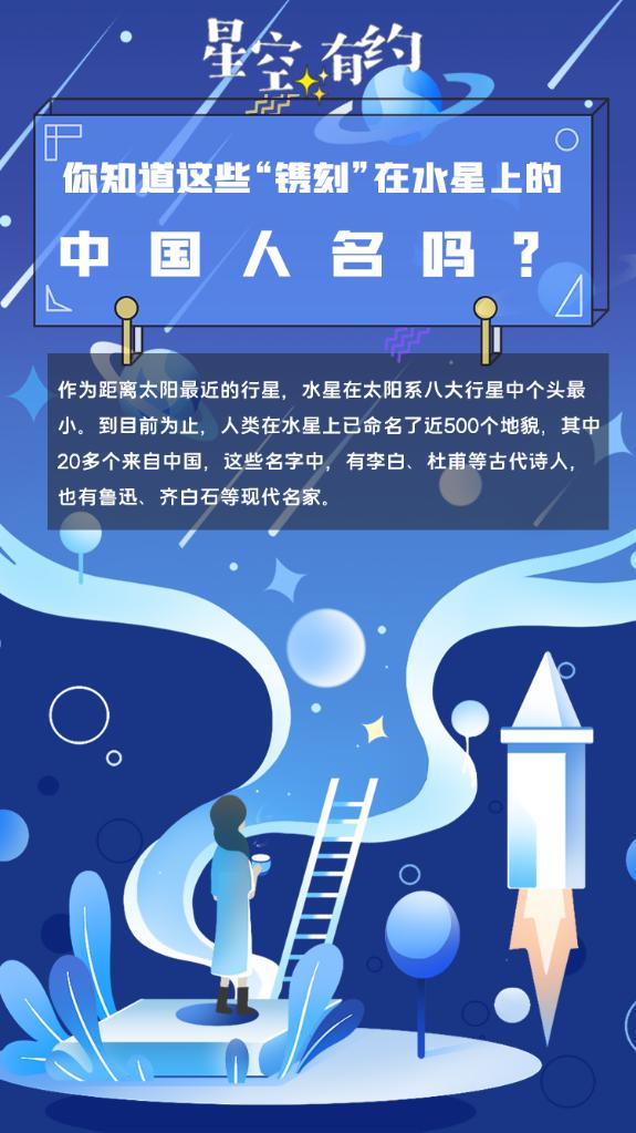 为了保证充足的名称来源,国际天文学联合会为不同行星和卫星建立了独立的命名系统。比如同为撞击坑,在水星上主要以已故的艺术家和文学家的名字命名。王科超说,迄今为止,以中国人名命名的水星撞击坑有21个,这些名字中,有李白、杜甫等古代名人,也有鲁迅、齐白石等现代名家。