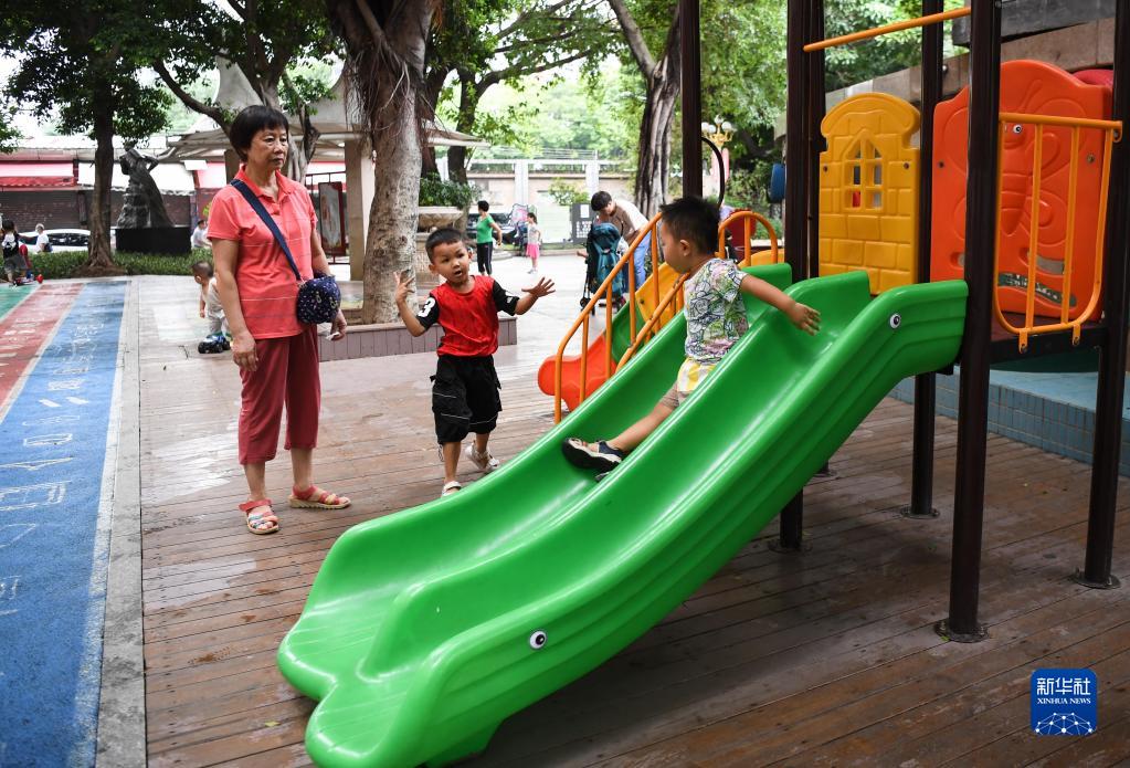 在广州海珠区沙园街道广重社区广场,小朋友在玩耍(8月5日摄)。新华社记者 邓华 摄