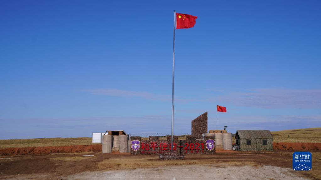 这是9月13日在俄罗斯奥伦堡州东古兹靶场拍摄的“和平使命-2021”“中国营”营区广场。 新华社记者 梅世雄 摄