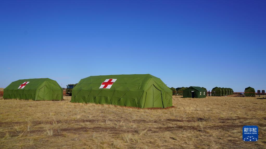 在“中国营”东北角,记者看到了一座小型野战医院。门诊部、急诊、住院部等一应俱全。据了解,在这次联演中,沈阳联勤保障中心第961医院、北部战区疾病预防控制中心抽组力量开设野战医院,负责医疗救护、新冠肺炎疫情防控及饮用水、食品检验和环境消杀。