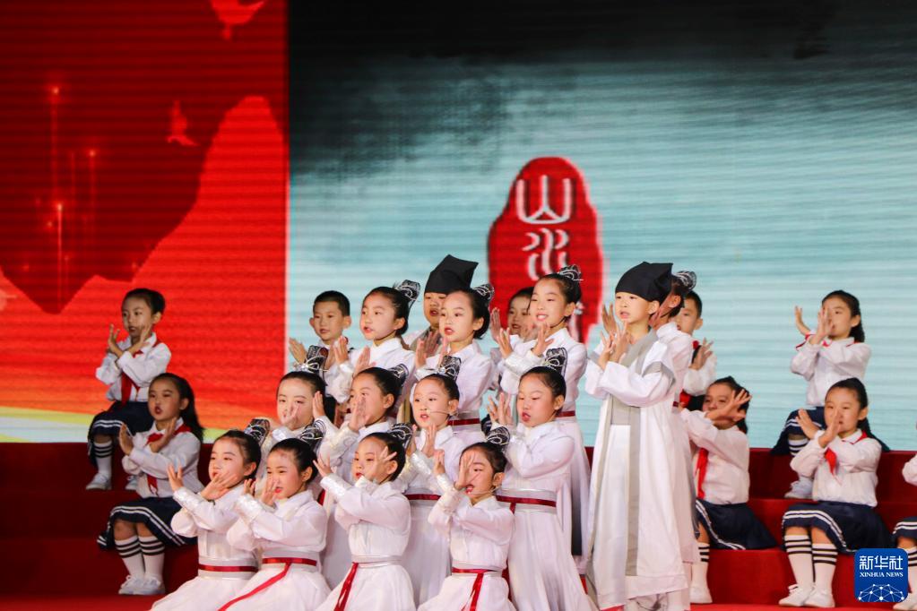 9月14日,鄂尔多斯市东胜区实验小学的学生在开幕式上表演中华经典诵读《悠悠诗情润我心》。新华社记者 朱文哲 摄