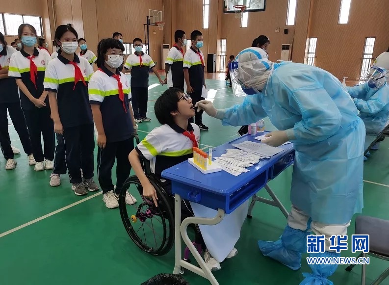 近日,福建省教育厅要求全省各级各类学校9月19日前组织全体师生员工完成新一轮核酸检测。目前,福州市全体师生核酸检测正有序进行中。(刘丰)