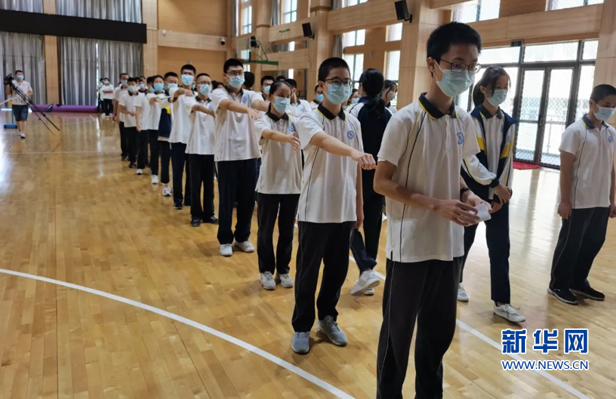 福州第三中学核酸检测现场。新华网发(福州市教育局供图)
